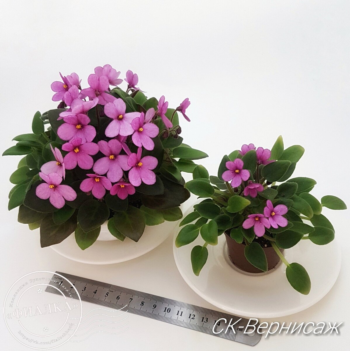 Вот, что из этого выросло. Как вы можете убедиться, фиалка в большом горшке выглядит здоровее во всех смыслах! У нее крупнее листья и цветы, обильнее цветение, листья "сытые" - равномерного оттенка без желтеющей каймы.