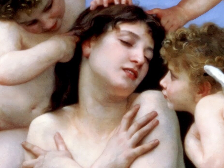 Дополнением к этому сюжету выступила картина «Первый поцелуй (Амур и Психея в детстве)», герои которой были помещены в облака, чтобы возвысить их чувства в буквальном смысле. Сюжет картины был основан на литературном источнике, но это была не сказка из романа Апулея, а поэма Лафонтена «Любовь Психеи и Купидона». Завершением этой темы стала в 1895 году картина «Похищение Психеи».