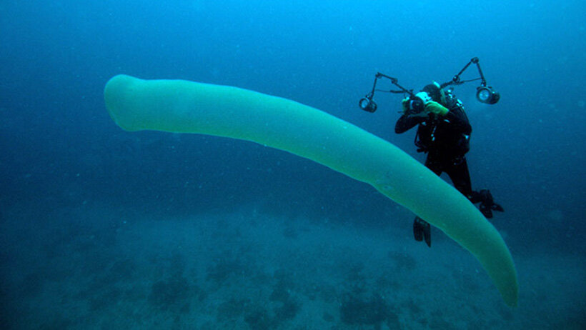 Они настолько редки, что дайверы их частенько сравнивают с единорогами, и запечатлеть на фото и видео их удалось всего несколько раз. Из огромного количества живых существ, обитающих в тёплых тропических и умеренных водах океана – эти, пожалуй, одни из самых необычных, даже странных. Пиросомы имеют форму труб, закрытых только с одной стороны. На самом деле, это не одно существо, а целая колония организмов, производящих копии самих себя. Называются они зооидами. Отдельные зооиды - крошечные создания, покрытые желеобразной оболочкой. Зооиды питаются планктоном, фильтруя воду через свои органы, а переработанная вода испускается внутрь трубы, а затем выходит из отверстия на одном конце. Что создаёт струю, которая и способствует перемещению порисомы в толще воды. Но эти струи достаточно слабы, поэтому основным способом передвижения порисом, является океанское течение. Колонии зооидов – порисомы – вырастают до 4 и более метров, но чаще встречаются порисомы, размером не более 30 см. Опытные дайверы не советуют заплывать внутрь этих загадочных труб, т.к. зафиксированы случаи, когда внутри порисом находили трупы мелких животных, например, пингвина. Предполагается, что пингвин случайно или из-за любопытства заплыл внутрь, не смог найти выход и утонул. Ещё большей необычности, этим и без того загадочным существам, добавляет люминесценция. Их свечение, розоватое, белое или голубое, заметно на расстоянии нескольких метров. Некоторым дайвером приходилось касаться порисом – на ощупь они мягкие, похожие на желе. При этом животное ни как не реагирует на прикосновения. К сожалению, из-за того, что крупные особи достаточно редки, учёным крайне мало о них известно.