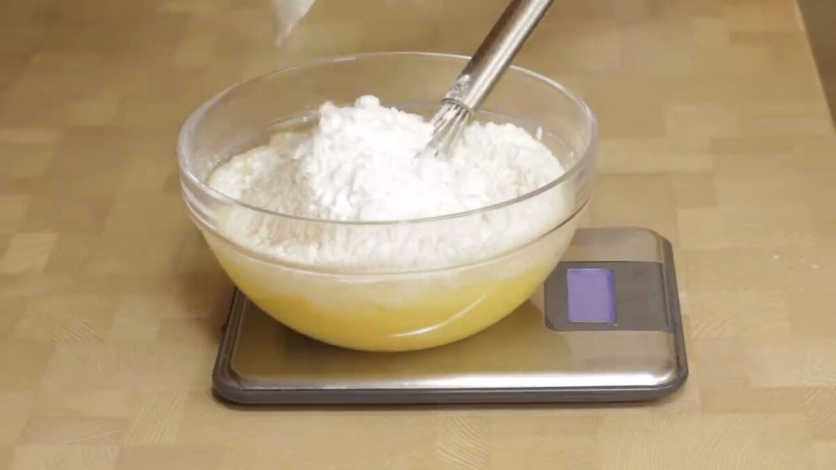 - Перед каждым блином тесто следует перемешивать, так как крахмал оседает на дно.