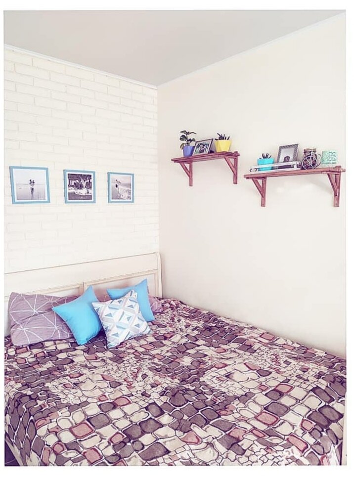 Материалы: ✔️Доски необходимой длины ✔️Кронштейны ✔️Воск ✔️Лак ✔️Саморезы с дюбелем ✔️Пила или лобзик ✔️Шлифмашинка ✔️Перфоратор с необходимым сверлом ✔️ Шуруповёрт ✔️Уровень,линейка и рулетка (простой карандаш, чтобы делать отметки на стене). 🔹Распиливаем доски. 🔹Шкурим все деревяшки средним зерном (Р80). 🔹Покрываем воском и даём просохнуть. Я нанесла 2 слоя. 🔹Наносим лак. 🔹Я прикрутила доски к кронштейнам. Ошибка! Доска частично закрыла отверстие для вкручивания в стену. Подлезть было невозможно. Пришлось снимать доски и прикручивать каждый кронштейн по отдельности и только потом сверху класть деревяшки. 🔹 Молярным скотчем отмечаем длину на сверле по размерам дюбеля. И проделываем отверстия в стене. Способ с использованием малярного скотча для ровного просверливания дыр, не сработал. Может сделала что-то не так. Надо поучиться у @domometria. Хоть и 100 раз все перепроверила, пришлось заново дырявить стену и все выравнивать. .🔹Прикручиваем дощечки на кронштейн. Все проверяем у