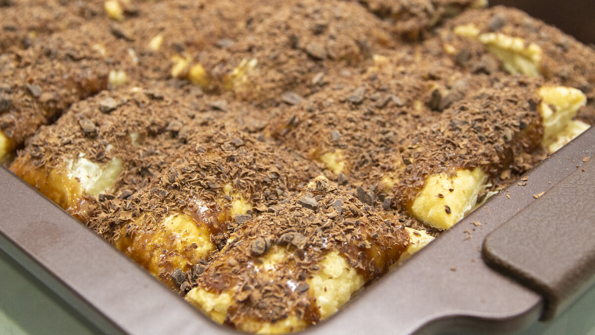 Шоколадно банановый десерт за 20 минут из готового слоеного теста