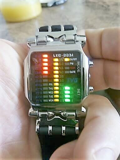 Очень прикольные часы. внимание окружающих обеспечено! Буквы синим цветом действительно плохо видно, но на мой взгляд это мелочи. Заказ пришёл быстро. Трек отслеживался. Всё работает. Всем доволен. Пришли быстро, работают как надо. В натуре они меньше чем на картинке. на моей худой руке смотрятся нормально. В целом смотрятся прикольно. время определять не сложно. Часы пришли с разряженной батарей, но заменить не проблема. На Люкс, конечно, не тянет, но как прикольная игрушка - пойдет. Цифры в первом столбце оказались не очень выразительными как на картинке, практически не различимы даже при нормальном освещении. Часики тяжёленькие, корпус металл. Инструкция на английском. Выглядят очень необычно! Часы для техногика или инженера! Часы в нашей группе: https://vk.com/wall-187491521_744