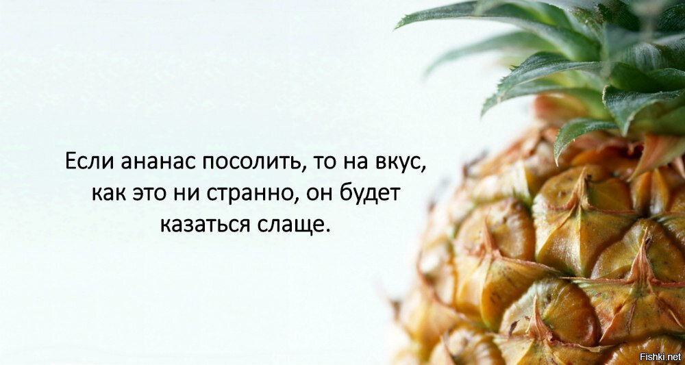 1. Соленый ананас Звучит странно, но если посолить ананас, он станет еще слаще. Просто попробуйте. 2. Изобретатель пожарного гидранта Имя человека, который запатентовал изобретение пожарного гидранта, неизвестно. Потому что здание, в котором хранились эти записи, сгорело. Иронично, да. 3. Стороны света Если вы будете долго идти на север, рано или поздно вы обнаружите, что идете на юг. Не важно, как долго вы будете идти на запад, идти на восток вы от этого не начнете. 4. Постельные клещи В течение 10 лет вес вашего матраса удваивается. Это происходит потому, что в нем живут крошечные постельные клещи, чьи продукты жизнедеятельности и утяжеляют вес постели. Так что меняйте матрасы почаще! 5. Шоколад как лекарство Молоко с шоколадом — напиток, который мы любим за его приятный вкус. Но знаете ли вы, что изначально он продавался как лекарство, изобретенное ирландским врачом-терапевтом? 6. Кровать смерти Кровати намного опаснее, чем вы думаете. Только в США около 450 человек умерли от пад