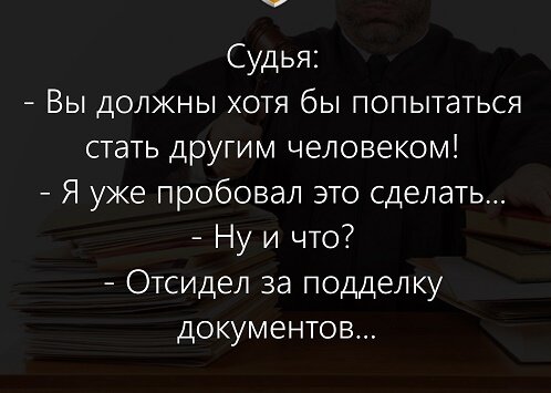 Сегодня обойдёмся без новостей на грустную юридическую тему, а лучше немного улыбнёмся. --- Судья выносит обвиняемому приговор — 25 лет. Обвиняемый: