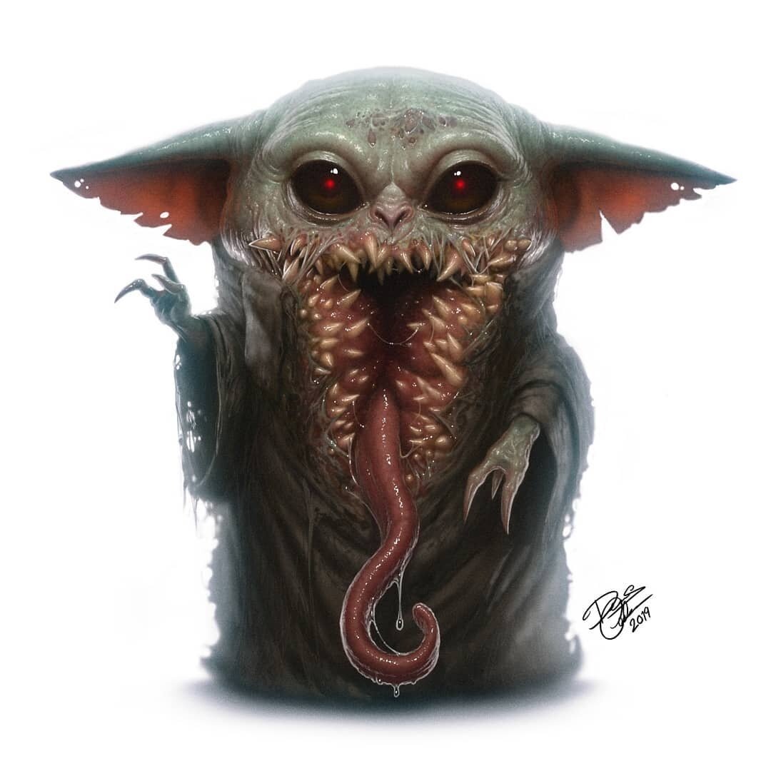 Фан-арт творчество с каждым годом набирает все больше и больше оборотов, а его популярность в сети возрастает с невероятной силой. Практически на каждого известного персонажа можно найти свой особенный взгляд отдельных авторов, даже самый необычный. Например, художник Dennis Carlsson очень тяготеет к реалистичным натурам и жанру хоррора. Все это сплелось в его серии работ, где он изображает популярных персонажей в их самых жутких образах. Взгляните сами! Бейби Йода из "Мандалорца" Бейби Йода - крохотное существо с зеленом цветом кожи, принадлежащее к неизвестной расе, как и магистр Йода. Наименование "Бейби Йода" получил в сети, так как никто не знал как его называть. Обладает большой Силой, которая представляет собой некое энергетическое поле. На какой стороне (светлой или темной) находится это существо нам неизвестно, но вот автор арта, вероятно, изобразил его именно как представителя ситхов. Патрик Стар из "Губка Боб квадратные штаны" Патрик Стар - морская звезда и друг главно