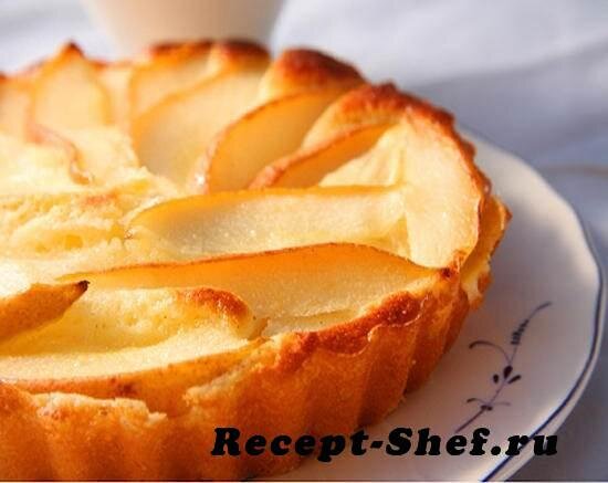 Один из лучших пирогов, который подают к кофе! Для уменьшения калорийности можно вообще обойтись без основания и запечь только творожную массу. А для того, чтобы она не пригорала – смазывают форму маслом и посыпают сухарями. Готовится такой торт 2 часа и 10 минут. Из них 1,30 – это подготовка. Такой торт можно разделить на 12 порций. Для этого необходимо: · Соль (щепотка) · Мука – 200 грамм · Сливочное масло – 100 грамм · Желток – 1 · Сахар – 70 грамм Начинку делаем из: · Груш – 400 гамм · Ликера грушевого (можно бренди) – 2 ст. л. · Яиц – 3 штуки · Сахара – 100 грамм · Сыр домашний (Творог) обезжиренный – 750 грамм · Сливок – 100 грамм · Лимонный сок – от 1 лимона · Картофельного крахмала – 20 грамм · Пудра из сахара (для присыпки) Мука смешивается с солью и сахаром. Масло, порезанное на кусочки, кладется в миску с желатином. Замешивается тесто, формируется в форме с высотой 2 см. Ставится на один час в холодильник. О чищенные груши разрезаются на 8 частей и удаляются