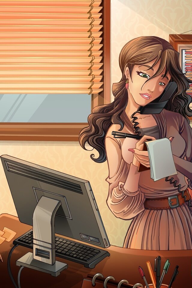 Вова не успел договорить, его прервала открывшаяся дверь. В кабинет вбежала девушка. Высокая худая брюнетка ловко устроилась на свободный стул. Ее волосы растрепались, а щеки пылали румянцем. Свитер, джинсы, кеды незнакомки совершенно не вписывались в офисный стиль присутствующих.