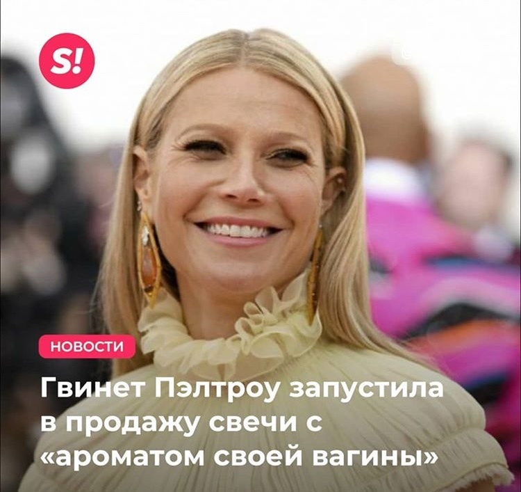 Актриса Гвинет Пэлтроу, которая уже может написать книгу «идеи для стартапа» запустила в продажу ароматические свечи с запахом собственных половых органов. Изначально ценник за одну свечу под названием «Это пахнет как моя вагина» (This smells like my vagina) был 75 долларов, но вся партия была раскуплена буквально за несколько часов. Секрет оригинального запаха раскрыла сама Пэлтроу: на самом деле это всего лишь бергамот, герань, дамасская роза и семена абретты Кому из российских звезд, по-вашему, стоит задуматься о таком оригинальном мерче?