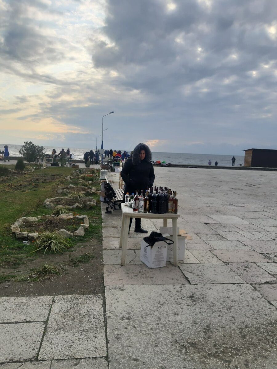 Повторюсь, что назвать это столовой трудно. Прилавок на улице, с намеками на антисанитарию и невменяемыми ценами. После 30 минут в очереди, нам удалось купить по одному "хачапури" и присесть в импровизированном зале для приема пищи.