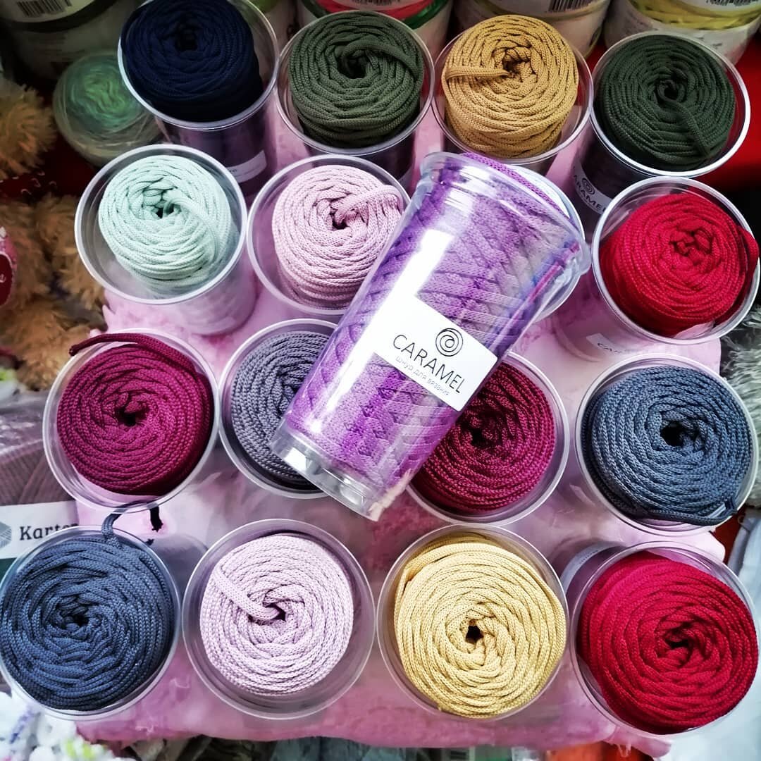 Шнур для вязания крючком бывает без сердечника или с ним. Самая популярная ширина шнура это 5мм. Разница в плотности и предназначении готового изделия. Если вы хотите делать интерьерные вещи, которые будут держать форму и украшать дом, вам подойдем мягкий полиэфирный шнур с кашмилоном в составе. По сравнению с простым хлопковым шнуром изделия будут бол