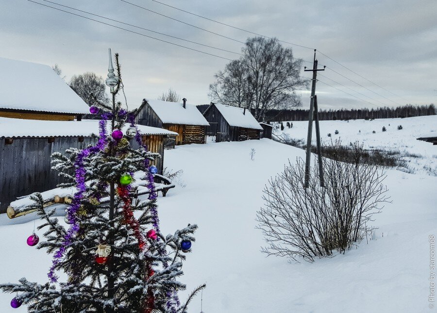Небольшой текст проиллюстрирую фотографиями йолачки этого года, сделанными 1 января в деревне Осинского района. Погода сильно подкачала, было пасмурно и все кадры получились густо синими, а еще кто-то говорит, что телефон снимает нормально. Смучился убирать синеву или надо было так оставить? Ведь 1 января как никогда цвет настроения синий?