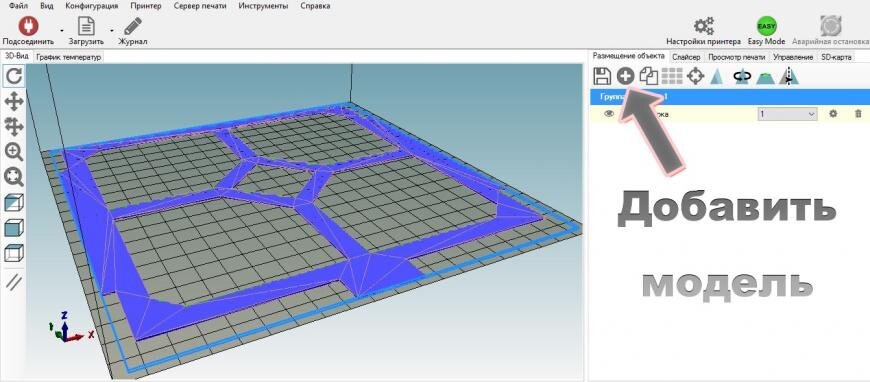 Печатал я пластиком ABS. Работать будем в программе Repetier-Host и слайсером Slic3r. Добавляем необходимую нам модель. Выбираем узор заполнения hibertcurve Выставляем количество периметров, которые будут нашим бордюром тротуара. Чем большее количество периметров установлено тем шире бордюр (он же поребрик) тротуара. Увеличением или уменьшением коэффициента подачи можно регулировать насколько фактурным будет результат. Слайсим и получаем следующую структуру Отправляем на печать.