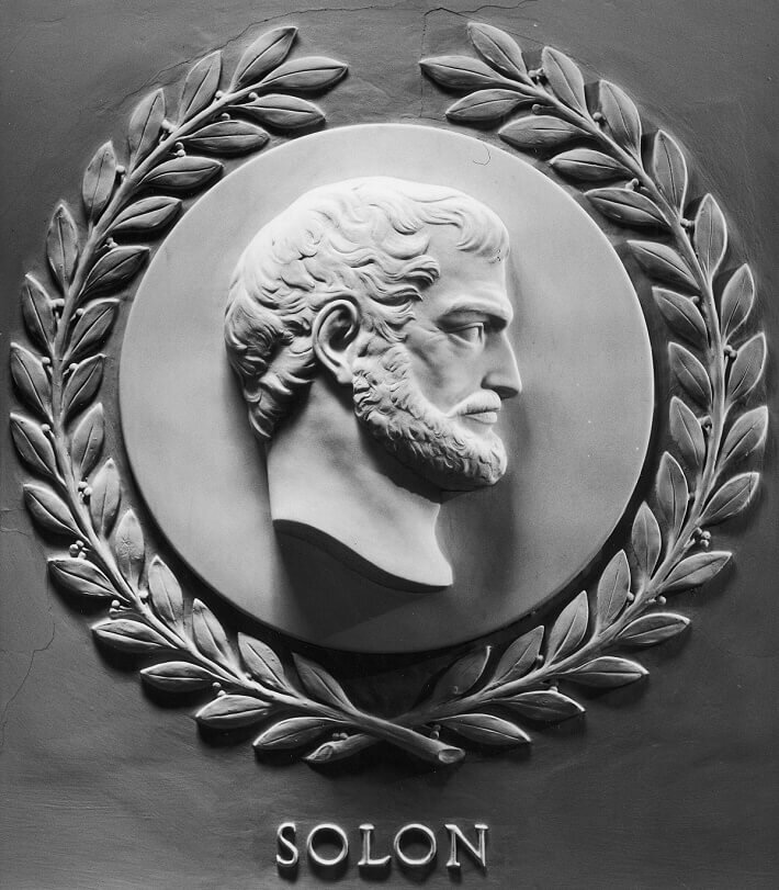 Ох уж эти древнегреческие мудрецы. Их смекалке и мудрости позавидовал бы любой современный политик. Сегодня в поле зрения - Солон, афинский политик, законодатель и поэт, один из самых авторитетных, пожалуй, древнегреческих политиков VI века . Фигура Солона возникает впервые на политической арене Афин уже в 604 г. до н.э, когда именно он убедил афинян бороться за остров Саламин, на которые претендовала маленькая Мегара, до этого даже не помышлявшая встать на пути Афин. Но дела Афин были настолько плохи, что, как говорится, осмелел даже самый никудышный полис. И именно Солон возглавил военную экспедицию на Саламин, которую считали провальной большинство жителей. Победа принесла Солону оглушительный успех и популярность. И уже в 594 г.до н.э. Солон стал первым архонтом, на которого была возложена почетная функция: быть примирителем в спорах между народом и знатью. Несмотря на то, что Солон был из старинного царского рода, все его помыслы были обращены на облегчение тяжелейшей участи народ