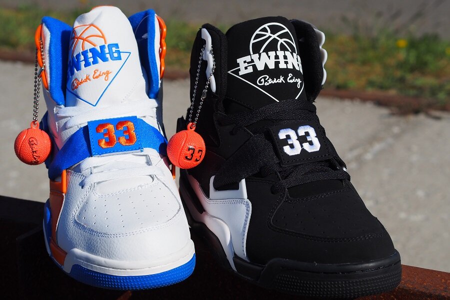 К слову, флагман компании — кроссовки 33 Hi — внешне были очень похожи на дебют Юинга Rebound. Они были выполнены в той же цветовой гамме, но широкий толстый ремень заменил более тонкий и эластичный ремешок, появился логотип с игровым номером баскетболиста 33, а резиновые петли для шнурков были заменены металлическими.