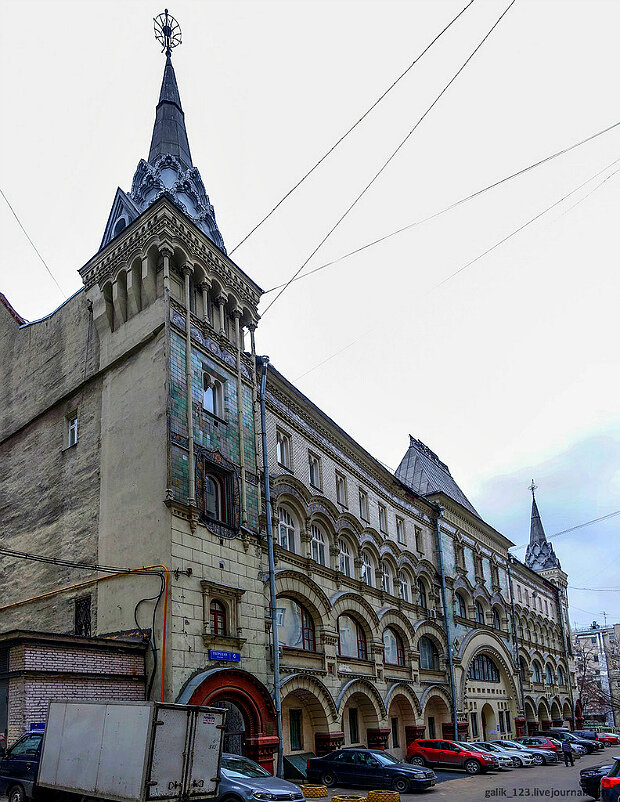 Этот дом продемонстрировал уникальную особенность воплощения национального стиля. Автор соединил элементы барокко и архаические моменты, взятые из древних построек. Основой проекта стал дом-каре, имеющий сообщающиеся между собой внутренние дворы. Образ сооружения удачно соединяет народный стиль с элементами древнерусского зодчества. Архитектура здания представляет собой комбинацию русского терема с элементами барокко.