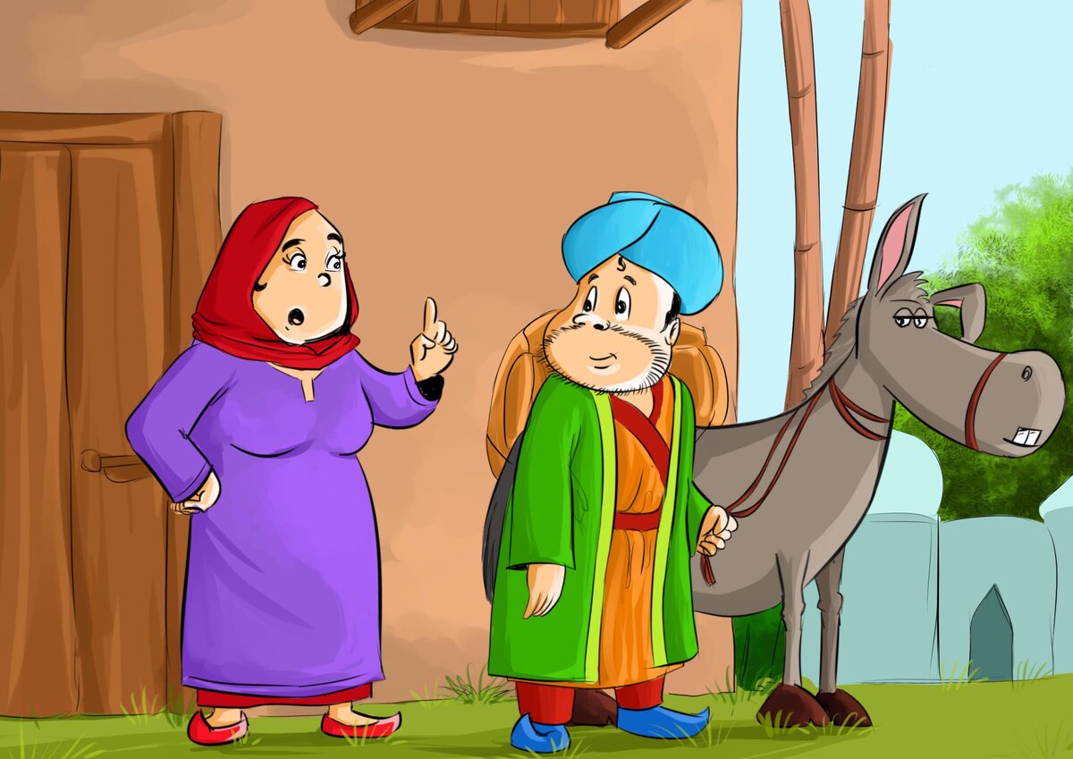 Однажды Ходжа отправился на своем осле навестить друга. - Счастливого пути, - сказала его жена - Не оставляй свои вещи и не возвращайся без них, - предупредила она его. Ходжа кивнул головой и вышел. По дороге Ходжа познакомился с несколькими друзьями. Он слез с осла и присоединился к ним. Придорожный продавец принес им чай. Ходжа радостно болтал с друзьями, попивая его. Наконец, друзья попрощались с ним. Ходжа повернулся, чтобы продолжить свой путь. К своему удивлению, он обнаружил, что его осел исчез. Ходжа начал искать своего осла, бегая туда-сюда, но никак не мог его найти. Один добрый человек посоветовал ему вернуться домой. - Твой осел в конце концов вернется домой. Когда ты вернешься домой, ты найдешь его там. - Но как же я вернусь домой без своего осла? - Спросил Ходжа. - Ты выглядишь молодым и подтянутым. Неужели ты не можешь дойти до дома пешком? - сказал мужчина и начал раздражаться. - Мой осел знает, где мой дом. Без него я не смогу найти свой дом, - признался Ходжа. - Все