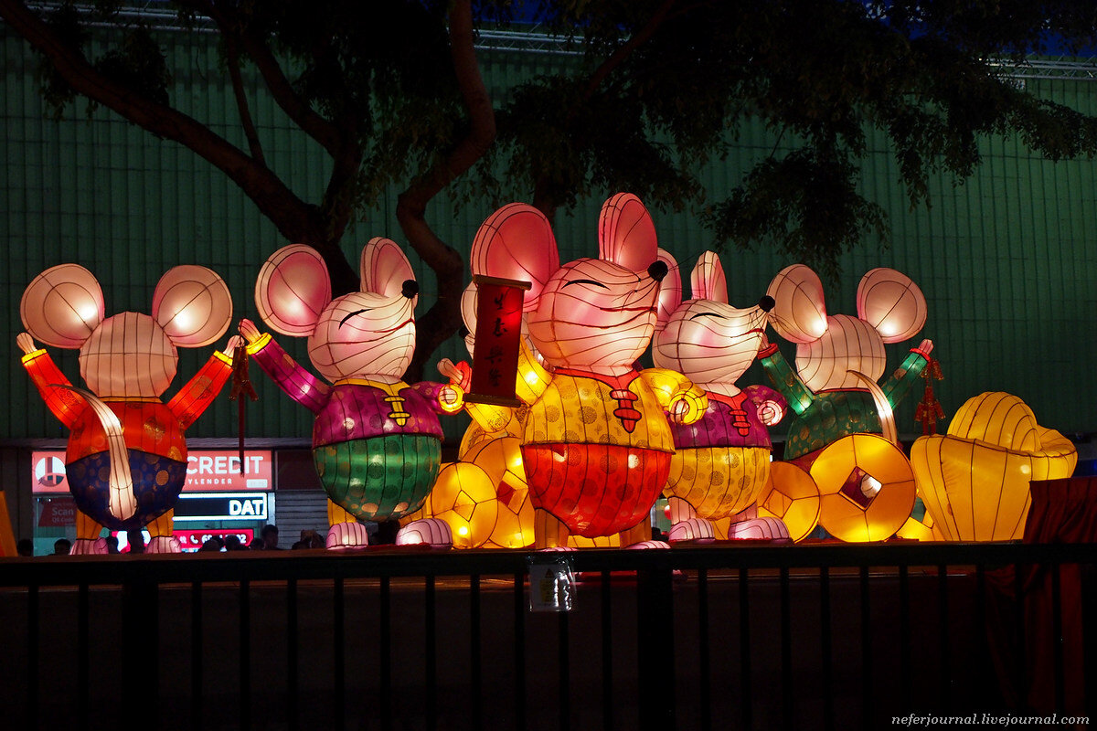Как говорится, ничто не предвещало. В Чайнатауне было ярко, празднично и оживленно. Китайские фонарики, много всевозможных цветочков, со всех сторон на тебя смотрят мыши. Бойко идет торговля, продавцы угощают конфетами, печеньками и неведомыми снэками из непонятно чего. Пока пройдешь по улицам напробуешься всякого. Вдруг смотрю, главная дорога перекрыта, стоит толпа. Подошла к полицейскому, спрашиваю, что происходит. Он мне: китайский новый год происходит, вот ждем президента, сейчас будет концерт, проходите туда.