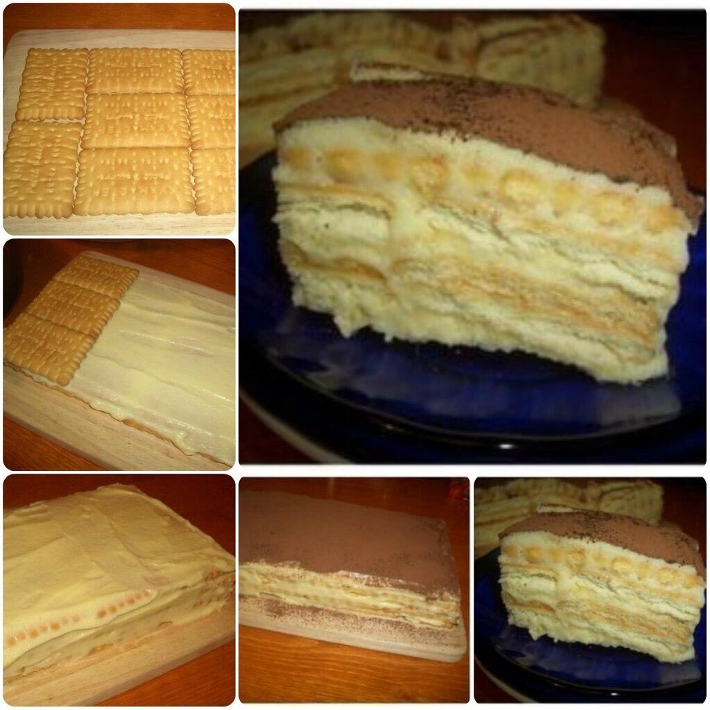 Отправляем в холодильник.Когда крем застынет,раскладываем печенье в форме прямоугольника в 5 слоёв по 11 шт., смазывая каждый слой кремом.Верх торта посыпаем обильно какао, через ситечко.Отправляем в холодильник минимум на 3 часа,ну, а если до утра, то вообще будет СКАЗКА!
