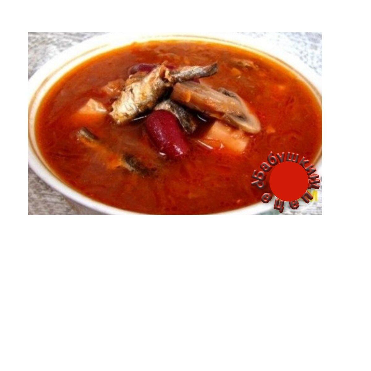 Для приготовления этого блюда, нам понадобится : 1)Лук1шт 2)Морковь1шт 3)Свекла1шт 4)Картофель4шт 5)Фасоль белая консервированная1/2банки 6)Килька в томате1банка 7) Грибы200г 8)Капуста100г 9)Соль 10)Сахар 11)Перец 12)Масло растительное Давайте приступим к готовке. 1)Грибы, если использовать сушеные, то сначала замочить, лучше на ночь, затем отварить 10 минут. Бульон грибной процедить, чтобы не попал осадок. Если использовать шампиньоны, нарезать пластинками и обжарить. А если лесные грибы, тогда их нужно сначала отварить, затем обжарить (обжаривать не обязательно, но так вкуснее). 2)Лук мелко нарезать и обжарить. Морковь потереть на крупной терке и обжарить с луком. Свеклу потереть на крупной терке и обжарить с луком и морковью. Картофель порезать кубиками, залить водой и поставить на огонь. 3)Когда закипит, поварить 5 минут, добавить капусту и зажарку, посолить, добавить сахар (примерно 2 ст. л.) и перец. 4)Поварить еще 5 минут, добавить фасоль, грибы и кильку (если сушеные грибы,