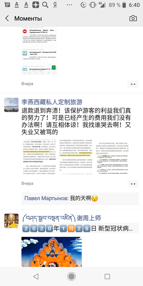 Всё же это случилось. Вот например, что в вечате есть по запросу "Туризм в Тибете": "Настало время возвращать деньги за туры. мы очень заботимся о безопасности клинтов. К сожалению, деньги за уже оплаченные вещи не могут быть возвращены. Настало время заботиться друг о друге. Нам тоже горько остаться без работыи подвергнуться порицаниям. Нынче уже как минимум второй год действовала программа развития зимнего туризма в Тибете. Она предполагала бесплатный вход на ряд достопримечательностей, а также 50 процентную скидку на перелёт и гостиницы. Иностранных туристов это вроде привлекло не особо, но многие китайцы собирались съездить в Тибет на Праздник Весны и на Лосар. Теперь все эти планы нарушены из-за эпидемии коронавируса. В самом Тибете заболевших пока нет, но на всякий случай по всему Китаю прекращают продаваться туры, много где транспорт начинает ходить по особому расписанию, под особым контролем передвижения жителей провинции Хубэй. Во Лхасе уже закрываются места массового скоплени