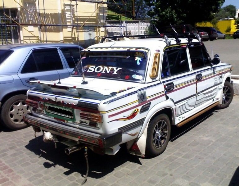 а теперь, собственно, наша подборка Этот «спортивный жигулёнок» чем-то напоминает новогоднюю ёлку. Интересно, как он ночью выглядит? И ведь наверняка владелец авто постоянно участвует в местных соревнованиях по автотюнингу! Следующий экземпляр мало чем отличается от предыдущего. Много спойлеров, ещё больше надписей… Диски вот да, неплохие. Снова «боевая классика» в деле. Главный элемент — багажник на крыше, чтобы диван было удобно перевозить. А так, не машина, а ракета! Стиль — утиль. И цвета не простого, а золотого! Ну что толкнуло хозяина на такие издевательства над автомобилем? Будем надеяться, что следующий автомобиль — это просто автобот в спячке, который обязательно преобразиться в новенький Камаро. А пока этот уставший «жигулёнок» красуется спойлером «на носу» и странной наскальной живописью. Да, если вы хотите улучшить аэродинамические показатели своего авто, лучше воспользоваться специализированными запчастями для тюнинга. Скамейкам место под подъездом. Это же скамейка? «Дорог