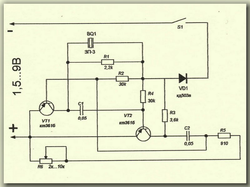 Скоро наступит лето и появится много комаров, москитов и других надоедливых мошек. Поэтому предлагаю собрать схему простого, но очень необходимого девайса - ультразвукового отпугивателя. Предложенное устройство, защитит вас как во время работы, так и во время отдыха от комаров и даже от надоедливого лая собак, если повысить частоту генератора до ультразвука. Схема ультразвукового отпугивателя приведена ниже: Звуковоспроизводящий элемент устройства - пьезоизлучатель ( ЗП-1, ЗП-3, ЗП25… в общем любой). При небольшой модернизации устройства можно повысить его мощность, путём добавления простого УНЧ и использования ВЧ динамика. Работа устройства для ультразвукового отпугивания. Диод VD1 нужен для защиты от неправильного подключения питания. Работа устройства для ультразвукового отпугивания. Диод VD1 нужен для защиты от неправильного подключения питания. Источник питания - батарея или аккумулятор с напряжением от 1,5В до 9В. Но лучше дать максимальный вольтаж, так как с увеличением напряж