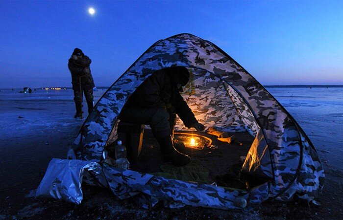 Раздел: Зимняя рыбалка Зимняя рыбалка не менее популярна, чем летняя, но к ней нужно готовиться очень тщательно, так как на зимней рыбалке высокий риск простуды, а еще более серьезных последствий, обморожений в случае не соблюдения всех правил на рыбалке. Ощущения довольно неприятные, а мало того еще и становится холодно, если долгое время находиться на открытом льду. А если еще и раздувает сильный и холодный ветер, то без зимней палатки просто никуда. Именно в ней можно спастись рыболову от зимней непогоды. На сегодняшний день современные палатки изготавливают из ветрозащитных материалов, который не подвергается продуванию. Но в морозные дни, когда температура ниже -25 градусов от холода даже зимняя рыболовная палатка мало спасает, поэтому каждый умелец в силу своих способностей и умения пытается обогреть свою палатку. Как обогреть палатку на зимней рыбалке?! - На сегодняшний день одним из самых лучших и эффективных способов обогрева зимней палатки является использование специализиро
