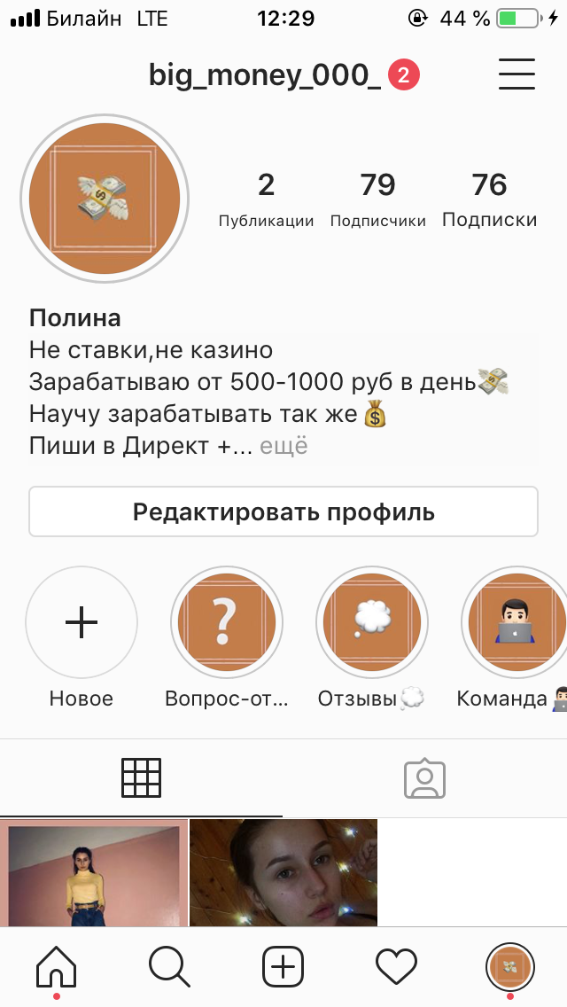 Привет, я зарабатываю 500-100 рублей в час, если хочешь зарабатывать так же, пиши мне в Инстаграмм big_money_000_