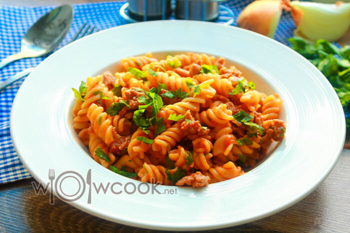 6. Тем временем отвариваем макароны или спагетти до полуготовности. Чтобы они не слиплись, в воду добавляем пару капель растительного масла. А погружаем изделия в кипящую воду. Макароны из твердых сортов пшеницы получаются вкуснее, но готовить их нужно немного дольше обычного. Отваренные макароны опрокидываем на дуршлаг.