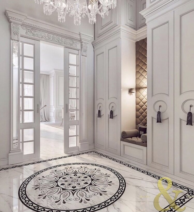 3. Делать ли зонирование с помощью материалов Есть два варианта— отделить прихожую кафелем, желательно под мрамор или геометрические рисунки. Добавится роскошь интерьеру. Второй вариант— сделать лам