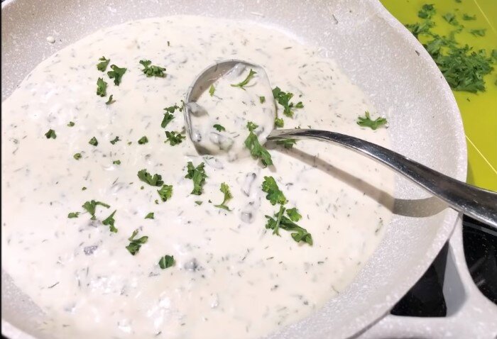Для тех, кто хочет что-то необычно, предлагаем приготовить сливочный грибной соус. Он так же подходит для котлет и любого гарнира. Ингредиенты: Шаг 1. Первым делом обжариваем грибы на сковороде, немного посолив. У нас шампиньоны, но можно выбрать абсолютно любые. После убираем в тарелку и ославляем немного остыть. Сами грибы нарезаем мелко, для соуса. Шаг 2. Затем нагревам сухую сковороду на среднем огне, высыпаем муку и обжариваем немного до красивого кремового цвета. Обязательно помешиваем постоянно. Шаг 3. После убираем с плиты сковороду, убавляем ее на минимальный огонь. В сковороду кладем сливочное масло и постоянно помешивая. растапливаем его. После снова ставим на плиту и выливаем сливки с молоком, но не все сразу, примерно половину. Обязательно хорошо все перемешиваем лопаткой или венчиком, чтобы не было комочков. Затем выливаем оставшиеся сливки с молоком и еще все перемешиваем. Шаг 4. Пока нагревается соус, добавляем специи по вкусу: соль, чеснок (мелконарезанный или выдавлен