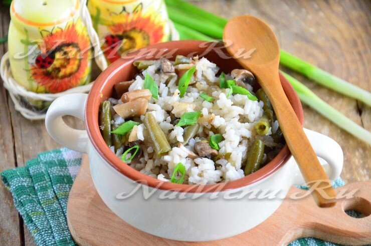 Рис с шампиньонами и фасолью в мультиварке. Все закинул и готово!
