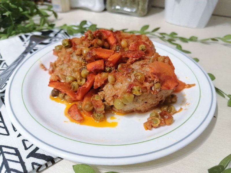Одно из моих любимых блюд. Готовится быстро и получается очень вкусно. Ингредиенты: Куриный фарш - 500 г Лук - 2 шт. Чеснок - 2 зубчика Морковь - 1 шт. Зеленый горошек - 100 г Томатная паста - 1 ст.л. Растительное масло для жарки Соль, специи - по вкусу Приготовление: 1. Овощи очистить. Измельчить 1 луковицу и чеснок. Морковь нарезать тонкими кружочками. 2. В сковороду налить немного растительного масла, обжарить лук и морковь до золотистого цвета. 3. Добавить томатную пасту, 50 мл воды, перемешать. Тушить соус 5 минут. 4. После добавить горошек и тушить все вместе пару минут. 5. Луковицу измельчить, добавить к фаршу. Также добавить специи, соль. Хорошо перемешать. 6. Сформировать тефтели и выложить в форму для запекания. 7. Залить томатно-овощным соусом. Запекать 40 минут при 180 градусах.