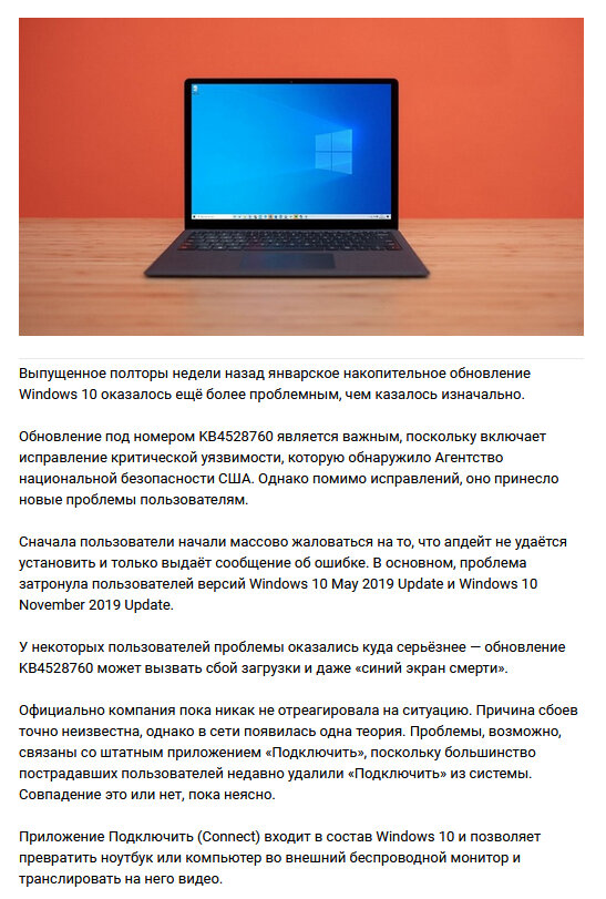 Январское обновление Windows 10 вызывает «синий экран смерти»