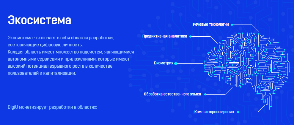 Однако, то что компания еще только планирует выйти на рынок, является и большим минусом. Ни кто не знает получится ли у нее, да и всегда есть возможность того, что администрация соберет деньги и сбежит... Однако давайте будем позитивны! DigiU - Экосистема разработки и финансирования проектов в сфере искусственного интеллекта. Для инвесторов доступно 20млрд долей.