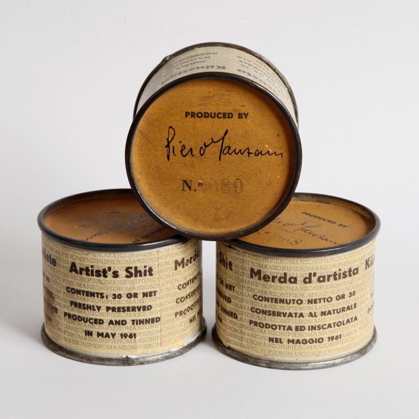 В 1961 году итальянский художник Пьер Мандзони создал свою самую скандально известную работу под названием "Дерьмо художника", которая состояла из 90 жестяных банок, якобы содержащих 30 граммов экскрементов художника. Каждая банка была маркирована содержимым, а также текстом с надписью "свежезаваренная, произведенная и консервированная в мае 1961 года" на английском, французском, итальянском и немецком языках. Эти банки взвешивались и оценивались в соответствии с ценой золота на момент производства. Вдохновением для этого "произведения искусства", как говорят, послужил отец Мандзони, который, сказал своему сыну, что его работа была "дерьмом".