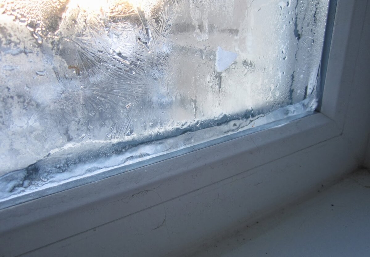 Одна из проблем, на которую часто жалуются хозяева квартиры где есть пластиковые окна – это промерзание. Этому есть свое объяснение. В зимний сезон температурные показатели поверхности окон понижаются, что вызывает такое явление, как осаждение на стеклах пара. При очень низких показателях термометра пар индевеет и перед вашими глазами предстанет тоненький слой льда. Такой процесс присущ тем помещениям, где коэффициент влажности воздуха выше допустимой нормы. Чтобы избежать замерзания нужно систематически проветривать комнаты. Проблема индевения стекол появляется при установке абсолютно новых окон. Посадка их более глубокая. Толщина металлопластиковых конструкций составляет 70—120 мм, в то же самое время толщина стены 50—70 см. Это вызывает изоляцию стекла от общей направленности теплого