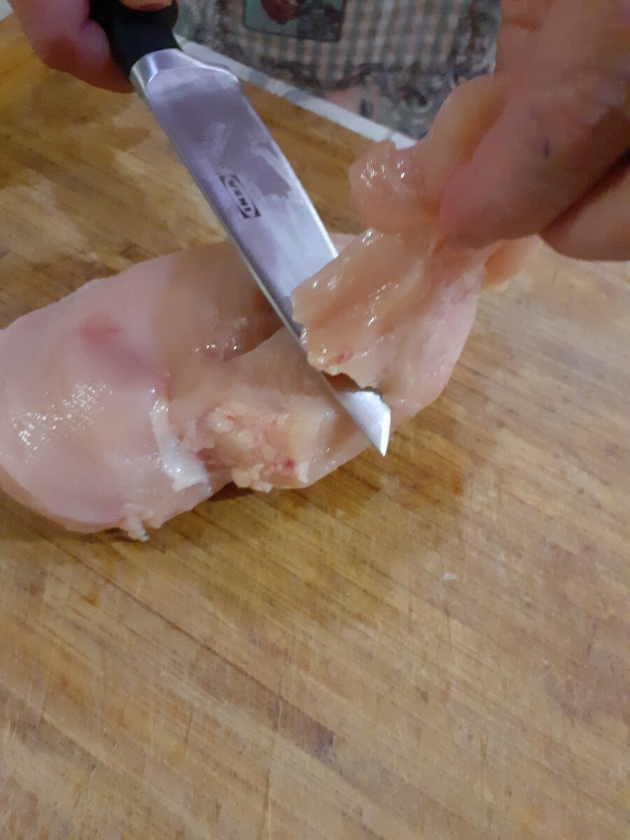 Куриное филе (лучше покупать охлажденное), помыть, обрезать верхние неровные кусочки (пригодятся на фарш для другого блюда) и вдоль разрезать на 3 части. Через пищевую пленку отбить (не сильно старайтесь, филе нежное), посолить, поперчить, смазать майонезом, посыпать тертым сыром и завернуть. Пусть маринуется. Займемся пока гарниром.