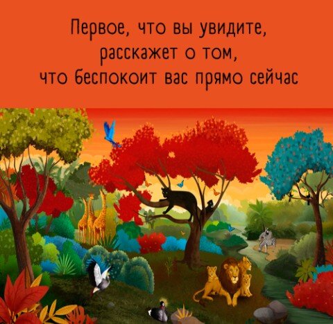 Наши глаза видят общий образ, а подсознание выбирает приоритетные детали. Они-то и говорят о том, что что мы чувствуем и о чем беспокоимся больше всего в этот момент. Что увидели? 1. Пантера Если в первую очередь вы заметили пантер, то главная причина вашего стресса — личные отношения. Вы чувствуете, что теряете связь со своим любимым человеком, и иногда даже не уверены, куда движутся эти отношения. Вспомните свои чувства, когда ваш роман только начинался, и, возможно, все, что вам нужно, — это просто поговорить о том, что вас беспокоит. Общение часто является ключом к решению 2. Лев Если вы сначала увидели львов, то вам сложно справиться со своими привычными обязанностями. Вы настолько увлеклись заботой обо всех и вся, что начали забывать о себе. Ваша семья и друзья думают, что вы невероятно выносливы и справитесь с чем угодно. Но вы чувствуете, что находитесь на грани и любая мелочь может стать последней каплей. Нет ничего плохого в том, чтобы иногда немного побыть эгоистом. 3.