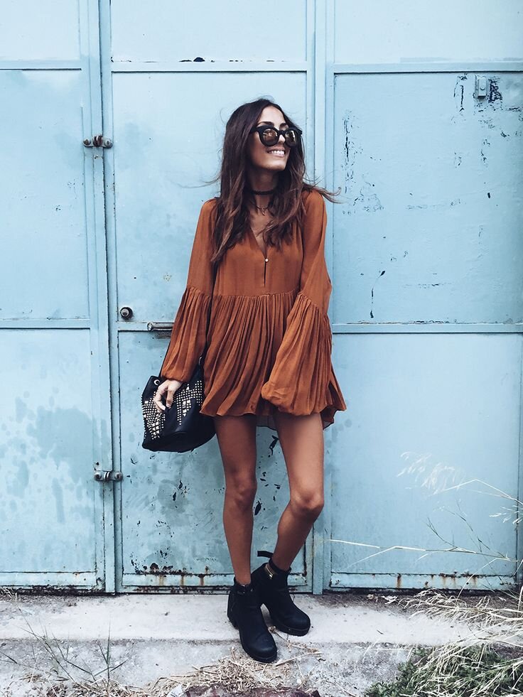 Эти платья окажутся незаменимы в весеннем гардеробе и подойдут женщине любого возраста Бохо-шик с армейскими сапогами Платье на века, которое всегда смотрится актуально, интересно, притягательно выполнено в стиле бохо-шик. Если к нему добавить современную обувь (казаки, армейские ботинки) и косуху получится невероятно свежий весенний образ. Обратить внимание в этом стиле стоит на цветочный принт, на однотонные, но яркие цвета, на асимметрию и укороченные модели с воланами. Замшевый сарафан Самое время присмотреть на весну сарафан, тем более что именно эта модель платья присутствовала чуть ли не во всех коллекциях известных модных домов. Самые актуальные сарафаны 2020 года выполнены из вельвета, замши, кожи. Наиболее современная модель - прямой крой, ровные линии, минимум декора. Платье с миксованием принтов Один из самых ярких, неоднозначных и очень удобных трендов сезона - платье с миксованием принтов. Идеальное платье для ленивых или очень занятых женщин, потому что не требует т