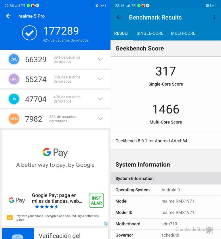В этой статье я сделаю обзор на смартфон Realme 5 Pro Приличное железо Аппарат построен на процессоре Snapdragon 712 в связке с 4 ГБ оперативной памяти. Такой начинки хватает для быстрого запуска тяжёлых приложений и плавной работы интерфейса. С играми проблем нет. World of Tanks: Blitz уверенно держит 60 fps на максималках с HD-текстурами. В PUBG по умолчанию выставляются высокие графические настройки. «Королевская битва» работает со стабильными 30 fps, играть комфортно. В realme 5 Pro 128 ГБ встроенной памяти, причем объём хранилища получится расширить с помощью microSD — слот для двух симок и флешки раздельный. Увы, разработчики не поставили чип NFC, так что владельцам этой модели придётся расплачиваться по старинке — наличными или банковской картой. Много камер не бывает Смартфон получил основную камеру на 48 Мп с сенсором Sony IMX586 и апертурой f/1.8. Помимо этого, у realme 5 Pro есть ещё три дополнительных сенсора: широкоугольный объектив на 8 Мп, двухмегапиксельный датчик