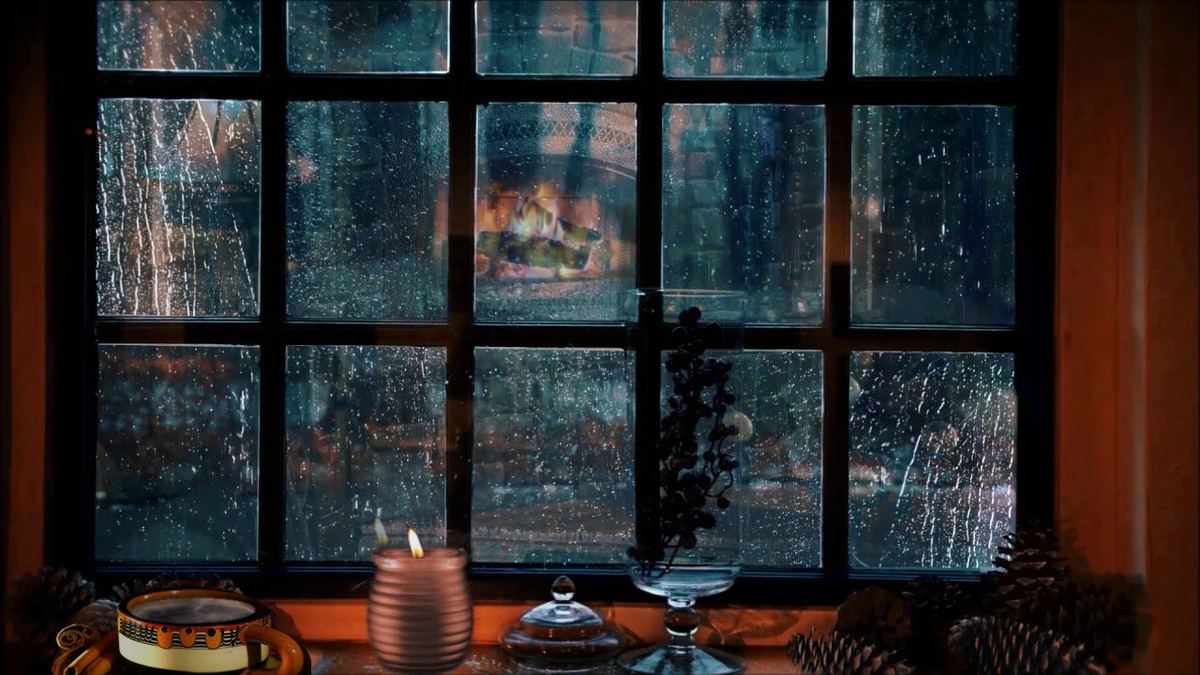 3 часа дождя, грозы и потрескивания камина | Интерьер со свечой и горячим кофе