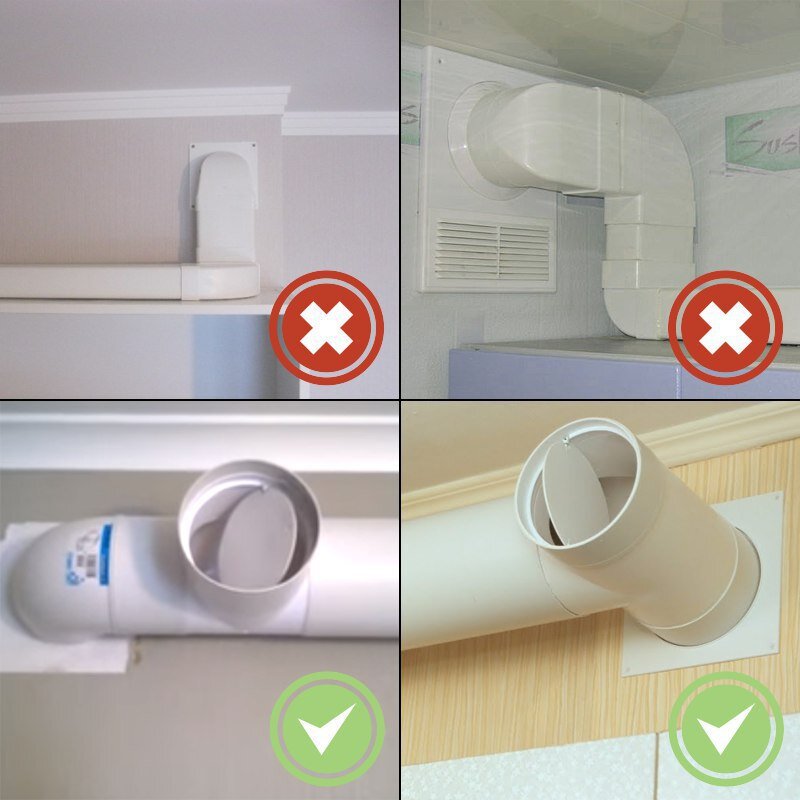 При подключении кухонной вытяжки к вентиляционной шахте необходимо предусмотреть схему работы естественной вентиляции, когда вытяжка отключена. Довольно часто воздуховод от вытяжки просто подключают к шахте и, так как во всех вытяжках установлены обратные клапаны, то после выключения вытяжки перекрывается путь для воздуха и на вашей кухне полностью исчезает вентиляция. Чтобы исправить эту ситуацию необходимо установить дополнительный обратный клапан, который бы закрывался от избыточного давления вытяжки, а после её выключения сам открывался под действием гравитации или естественной вентиляции. Тогда на вашей кухне всегда будет воздухообмен, не будут задерживаться пар, влага и запахи. Некоторые мастера пытаются исправить эту проблему установкой переходника в шахту с решеточкой для воздуха, но это лишь создает новую проблему – часть воздуха, который нагнетает вытяжка, возвращается по кратчайшему пути обратно на кухню. А через маленькие отверстия этих решеток естественная вентиляция