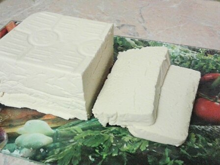 Тофу - достаточно известный продукт. Полезный и богатый белком. Подходит, для людей с диабетом, вегетарианцев и тех, кто сидит на низкоуглеводной (кето) диете. Сделать его дома не так уж сложно. И получается полностью натуральный продукт! Ингредиенты: 500 г. соевых бобов вода для замачивания + 3 л. соль 2,5 ст.л. 9% уксуса Понадобятся пресс-форма для тофу и измельчитель. Соевые бобы промываем и замачиваем в большом количестве воды. Соя увеличится в несколько раз, поэтому воду не жалейте. Я обычно убираю замачиваться в холодильник на ночь. На утро вот такой результат. Откидываем бобы на сито. Затем нужно добавить 1 л. воды и все измельчить до однородной консистенции. Конечно, удобно использовать для этого измельчитель с большим объемом чаши, но у меня только небольшой измельчитель к блендеру. Поэтому в первый раз пробиваю все погружным блендером, а затем эту кашицу частями уже в измельчителе. Использовать только погружной блендер не удастся. Получатся слишком крупно и большое коли