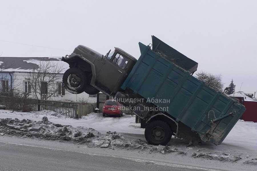 «Восстание машин»: в Хакасии перегруженный мусоровоз встал на дыбы