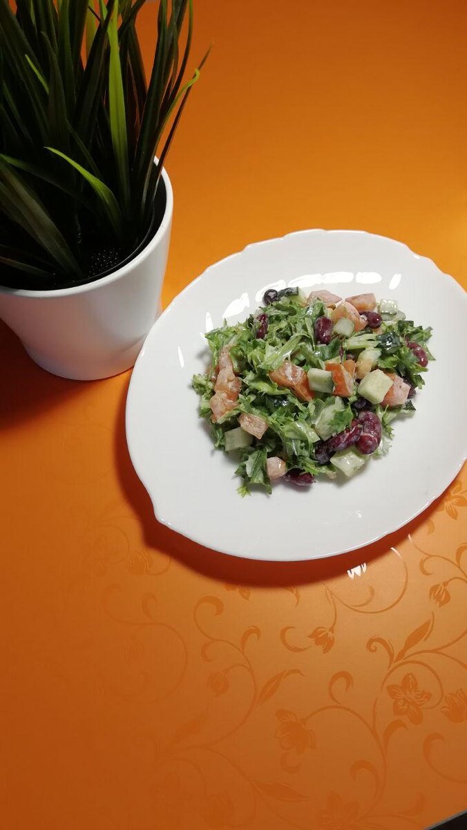 Вкусный и полезный салат с фасолью. Готовится за считанные минуты.