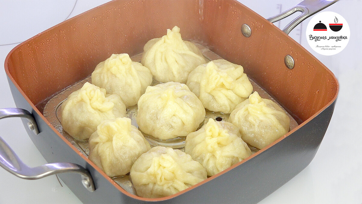 Собираю тесто и формирую вот такие мешочки. Смазываю момо растопленным сливочным масло (перед тем как варить).