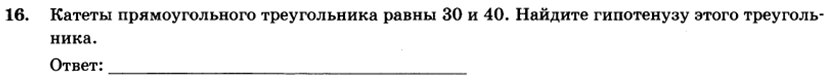 Ну что, дружище, давай продолжим наши занятия математикой? Ну, поехали: Ну и задача, прямо для устного счета! Но, как бы проста ни была задача, баллы за ее решение ставят. Давай решим, возведем катеты в квадрат, сложим и из суммы извлечем квадратный корень. Теорему Пифагора помнишь? Ну вот, получится 100. Это ответ, запиши его и поехали дальше: Тоже все элементарно просто. Ты же помнишь, вы доказывали в классе, что вписанный угол составляет половину центрального, опирающегося на ту же дугу. Все наглядно, угол АСВ опирается на дугу АВ и на ту же дугу опирается центральный угол АОВ, значит, угол АСВ = ½ угла АОВ = 73/2 = 36,5 градуса . Вот и ответ, запиши его и поехали дальше: Тоже все достаточно просто. Угол ВСА по условию равен 41 градусу, но угол ВСА равен углу САD как внутренние накрест лежащие при двух параллельных и секущей, но у угла А есть биссектриса, и один из углов, на которые она делит угол А равен 41 градусу, значит, весь угол А будет равен 82 градусам. Вот и ответ,