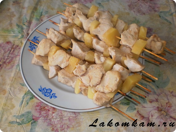 Куриный шашлык с пикантным ароматом ананаса покорит сердца многих людей своим вкусом.